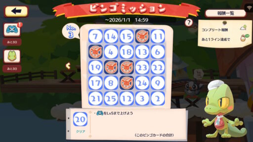 ミッションをクリアして、ビンゴを作り、報酬をもらおう。