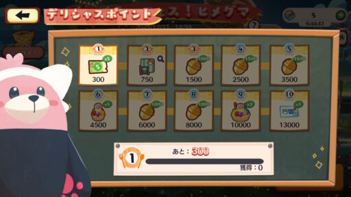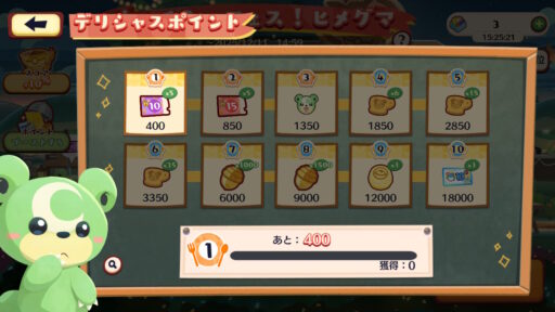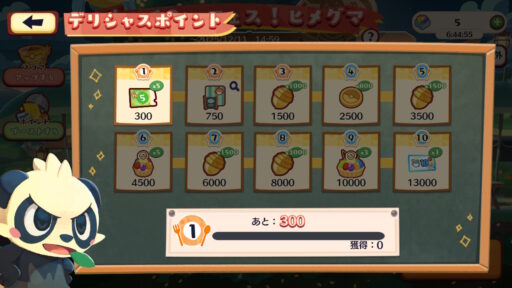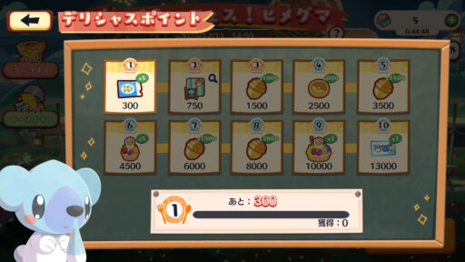 | 1 ~ 1,000 | ・ヒメグマ(色違い)のプロフィールアイコン(金) ・ヒメグマ(色違い) ポスター(金)A ・金のどんぐり×5,000 ・ふしぎなタルトL×20 |
