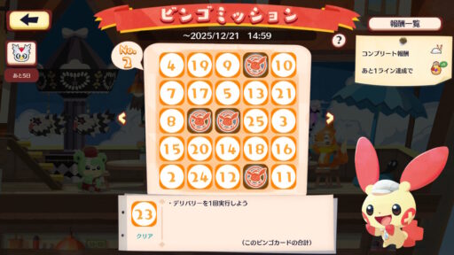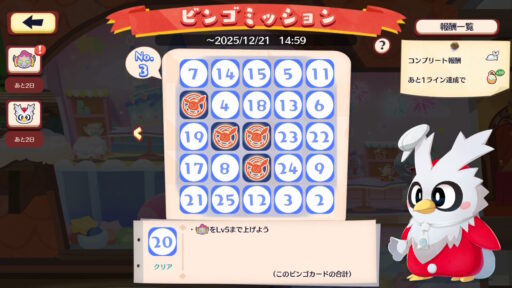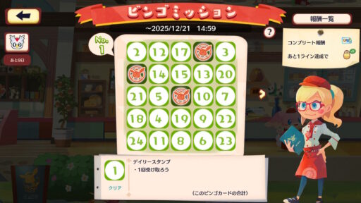 ミッションをクリアして、ビンゴを作り、報酬をもらおう。