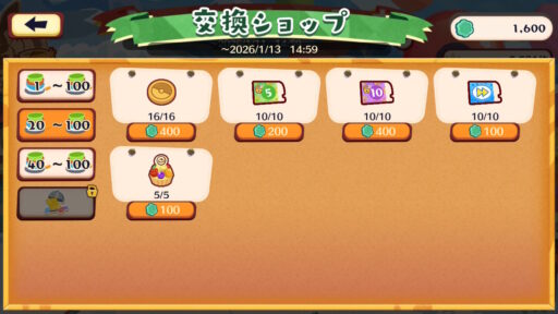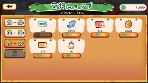 | 25,001 ~ 30,000 | ・金のどんぐり×1,000 ・ふしぎなタルトL×5 |