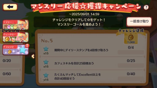 チャレンジカードNo.5達成金のどんぐり×1,000