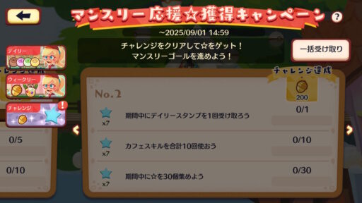 期間中にデイリースタンプを1回受け取ろう☆(青色)×7